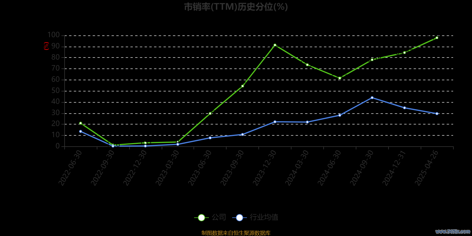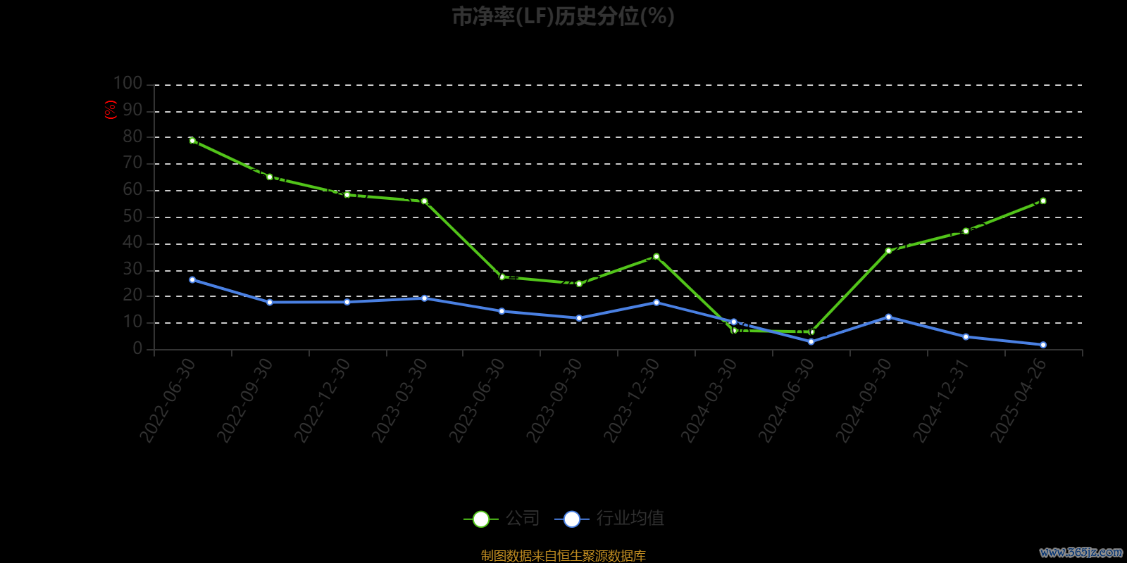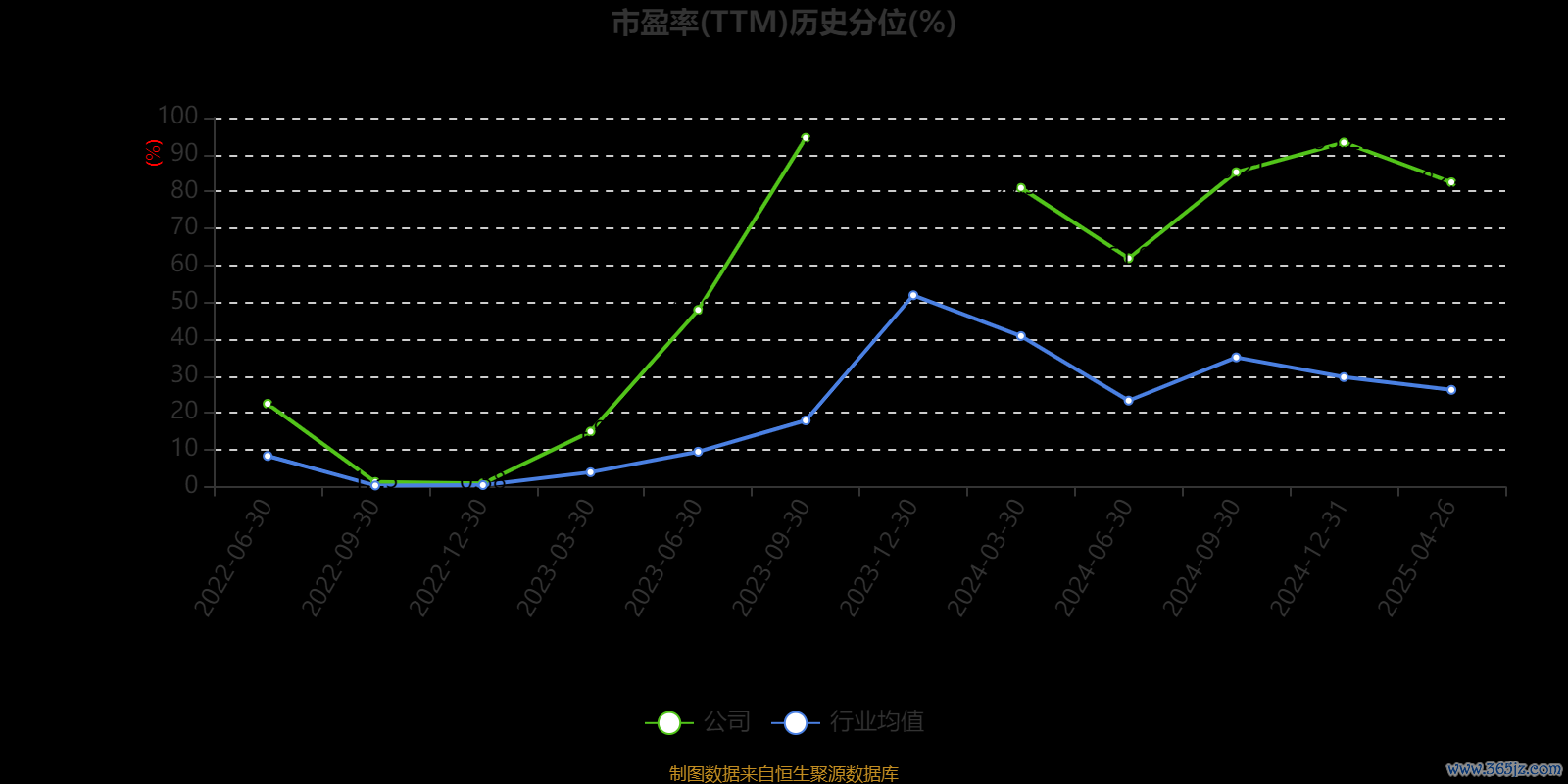 市盈率、市净率为负时鼎盛配资,不显示当期分位数,会导致折线图中断。