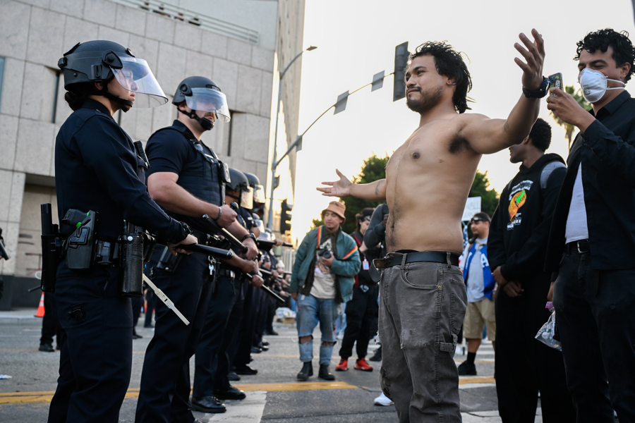 6月11日,美国洛杉矶警察局称,洛杉矶市中心10日晚有203人因未能疏散而被捕,17人因违反宵禁而被捕,另有3人因持有枪支而被捕,1人因使用致命武器袭击一名警察而被捕,还有1人因向洛杉矶警察局的飞艇发射激光而被捕。警方称,有两名洛杉矶警察局警察受伤。